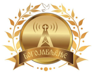 1.3 — Друштво има свој логотип и печат са логотипом а сам логотип печата је уједно и логотип Друштва. Логотип је кружног облика, златно жуте боје, који симболично представља планету Земљу. У самом кругу се налази цртеж антенског стуба, који је шири у основи а сужава се при врху. Сам врх стуба је прекривен Православним Хришћанским Крстом од кога су са леве и десне стране насликани радио сигнали који се од крста удаљавају у простор. Испод насликаног стуба, је цртеж ленте, на којој ћириличним писмом на Српском језику, великим калиграфским словима исписан назив Друштва БОГОЈАВЉЕЊЕ. Око овог круга, са леве и десне стране симетрично, нацртане су две ловорове гранчице по једна са сваке стране. Гранчице су на врху круга раздвојене мало и ту је цртеж голуба у лету.